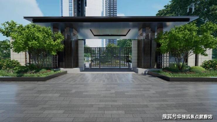 再看金众的设计图中,一一来看,大门让人眼前一亮,现代中式建筑精髓融合现代化格调,沿袭了金众公馆系的基因。超尺度设计,高端大气,美感外溢且内外协调。