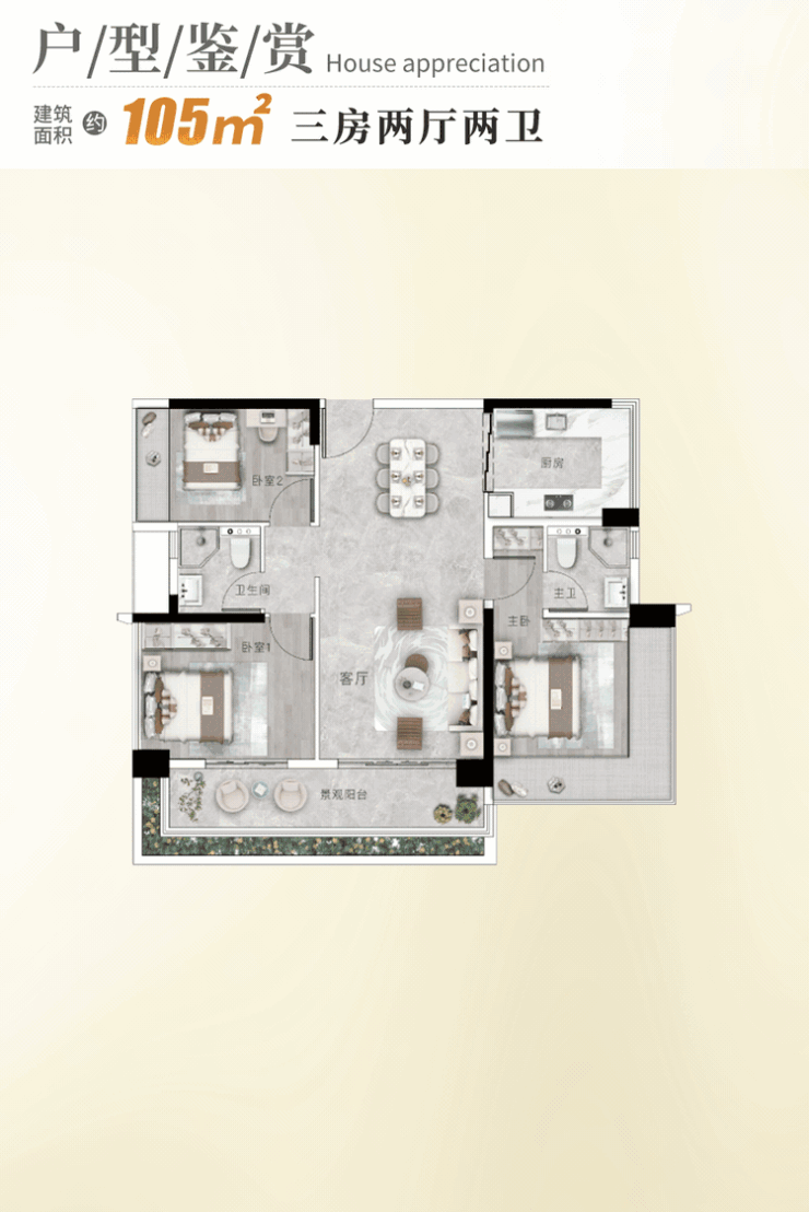 建面约105㎡三房