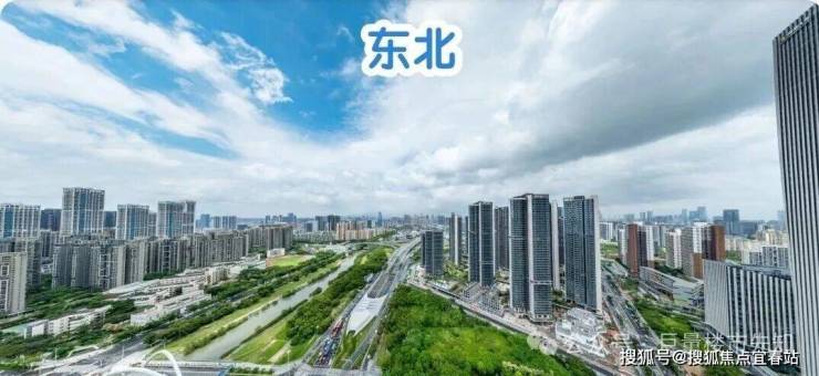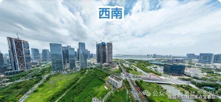 西南与东北:楼下近距是公园绿地和双界河东段景观,远处看新安老城方向与整体前海城市景观,远处海景为主。