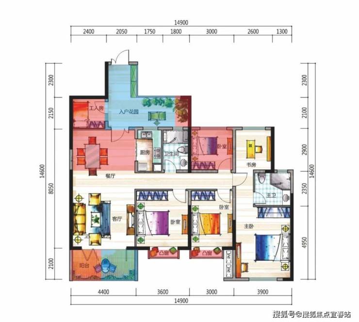 3.9米开间超阔主卧套房+独立书房空间,打造主人专属私密空间;