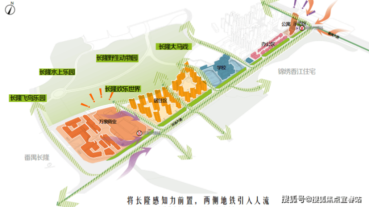 项目属于91万方的超级综合体,这里面包括24万㎡的商业、约51万㎡的住宅、约9.7万方的商业组团,以及72班小学+36班中学+21班幼儿园。