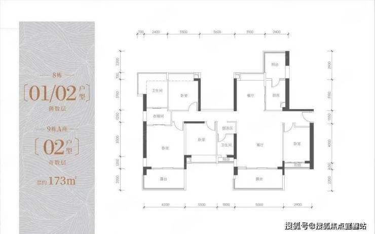 约173平4房2厅2卫(8栋01-02偶数层,9栋A-02奇数层)