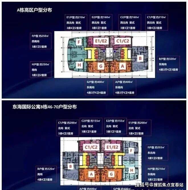 东海国际公寓建面约19万㎡,A、B两栋,户型涵盖75m²一房至800m²顶复,主力户型为140-500m²,户型面积跨度很大大,有30多个户型。目前在售主力户型为77/122/320/365㎡。(深圳东海国际公寓售楼处电话:400-859-7606)