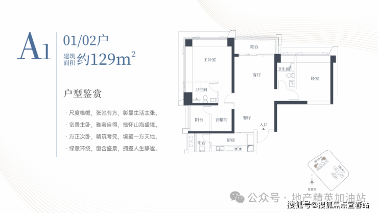 🔹1栋一单元A1、A2户型:面积约为129㎡