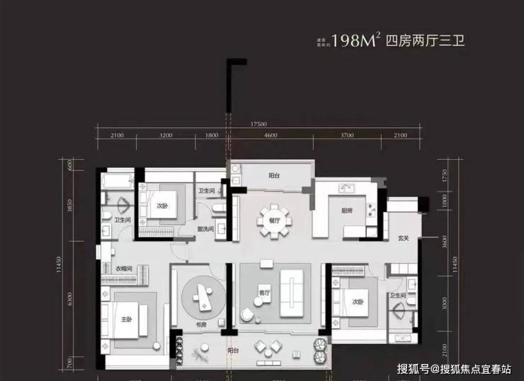 建面约198㎡奢宽四房: