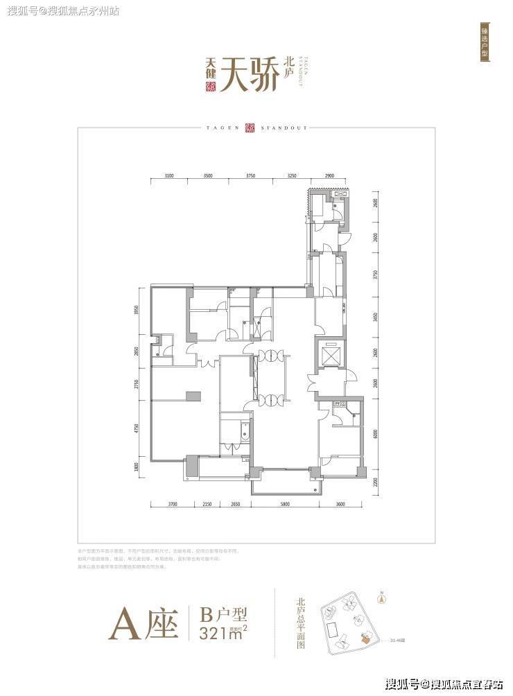 1栋A座:148米,46层,共85户,朝南为主,三梯两户,约266-321平,427平(顶复)