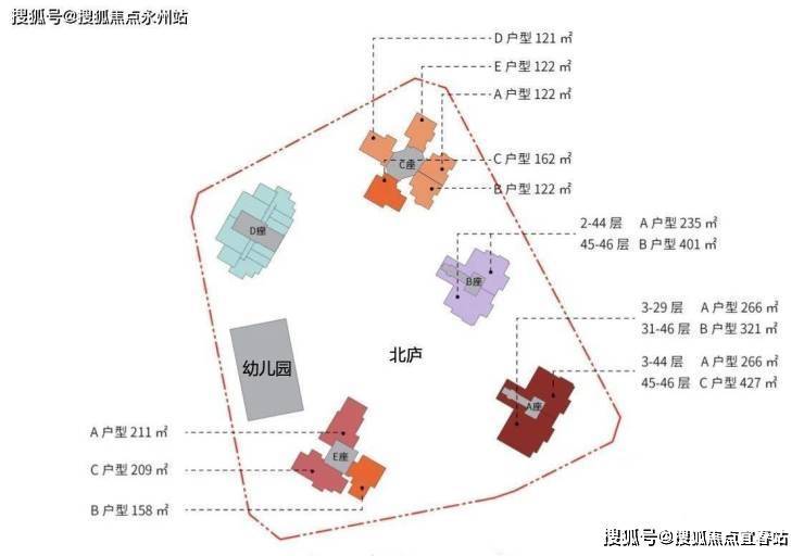 1栋B座:148米,46层,共84户,朝南为主,三梯两户,约235平,401平(顶复)