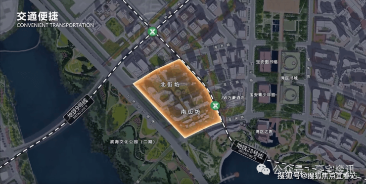 交通方面,步行约850米可达地铁5号线宝华站,约1.2公里到达1号线、11号线宝安站,虽非地铁上盖,但在低密地块中属合理范围。