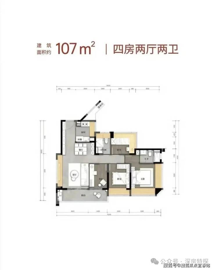 户型:建面约80-110㎡三到四房两卫