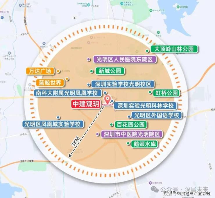 观玥名邸,位于光明区凤凰街道光侨路与观光路交汇处东南侧,地处凤凰城板块,根据光明十四五规划,凤凰城板块定位为光明科技总部基地,科创融合先锋商务区,提升光明城站枢纽地位,争取在2035年建成竞争力影响力卓越的世界一流科学城和高 质量高颜值的深圳北部中心。