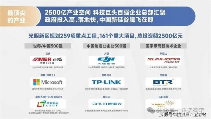 据2022年1月27日深圳市光明区人民政府印发的《光明区战略性新兴产业发展“十四五”规划》,力争至2025年打造3-5个百亿级平台引领型企业生态圈,百亿级龙头企业达7家、年产值超10亿元的企业超50家、上市企业数量超30家、省市级“专精特新”中小企业达100家、专精特新“小巨人”企业达18家、制造业单项冠军企业(产品)达7家。 未来将集聚更多高精尖人才,高阶客群不愁租。