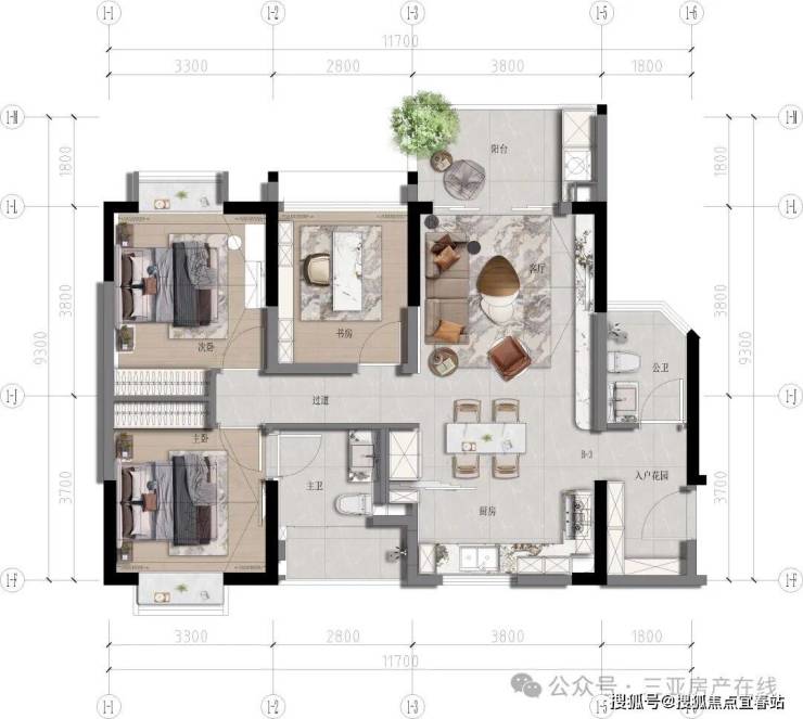 ◎无界生活:创新LDKS-B空间模式,客餐厨、书房、阳台联动打通