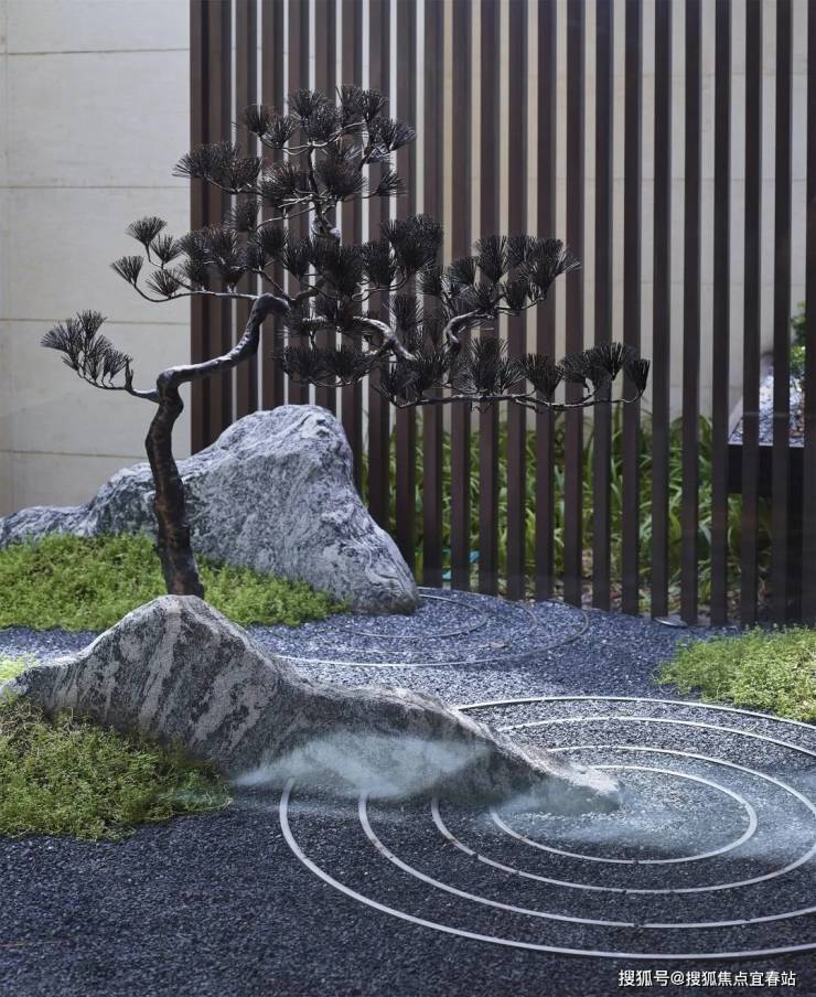 在景观规划上,项目将中国传统园林的内涵以现代设计手法层层递进,演绎传递给人们,营造符合当代人审美,简洁而又意味深长的景观空间。如沿路闲情逸致的曲水流觞和富有禅意的枯山水景空间,以及恢宏的主入口空间和端庄的迎宾中轴空间等,都让人宾至如归,感受到了项目的尊贵与大气。