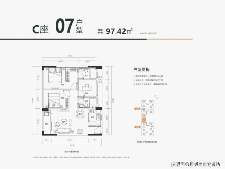 🏡C07户型:约97㎡改善级舒适大三房户型