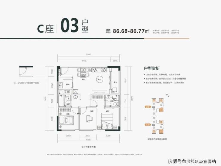⛳【户型鉴赏】🏡C03户型:约86㎡全能大三房,南北通透 + 全明格局