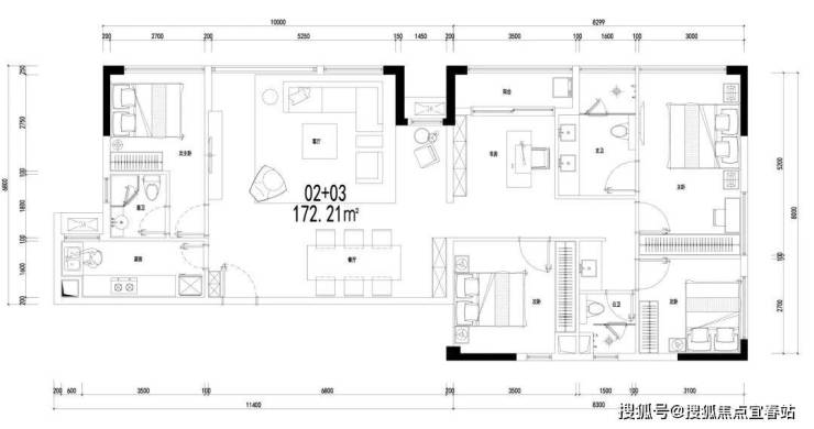 🏡C02+03户型:约172㎡4+1房,阔尺空间藏风华,高区无遮视野揽星河