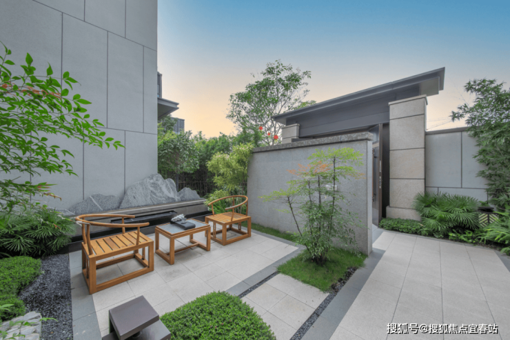 二进私家庭院,精心布置的园林景观映入眼帘,假山、花木错落有致,营造出宁静祥和的氛围。