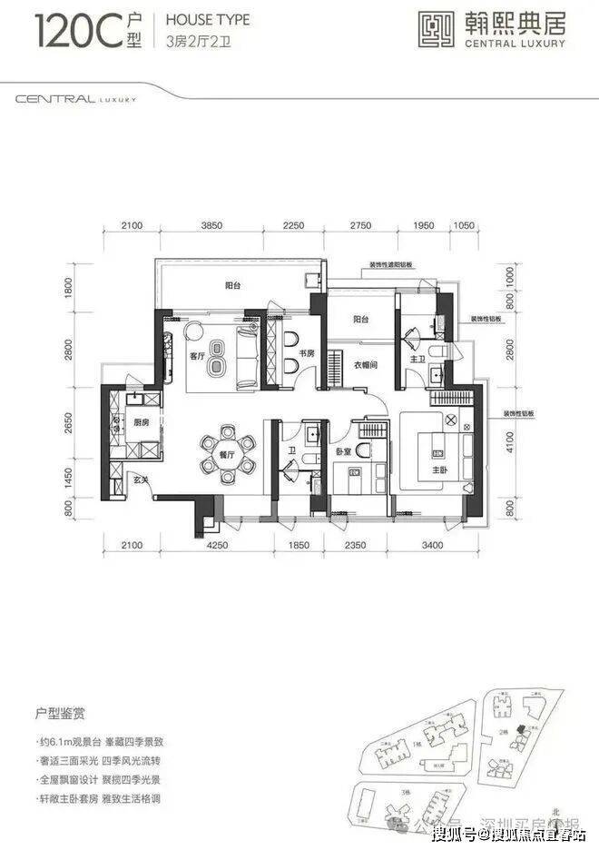 建面约120㎡的3+1房2厅2卫,