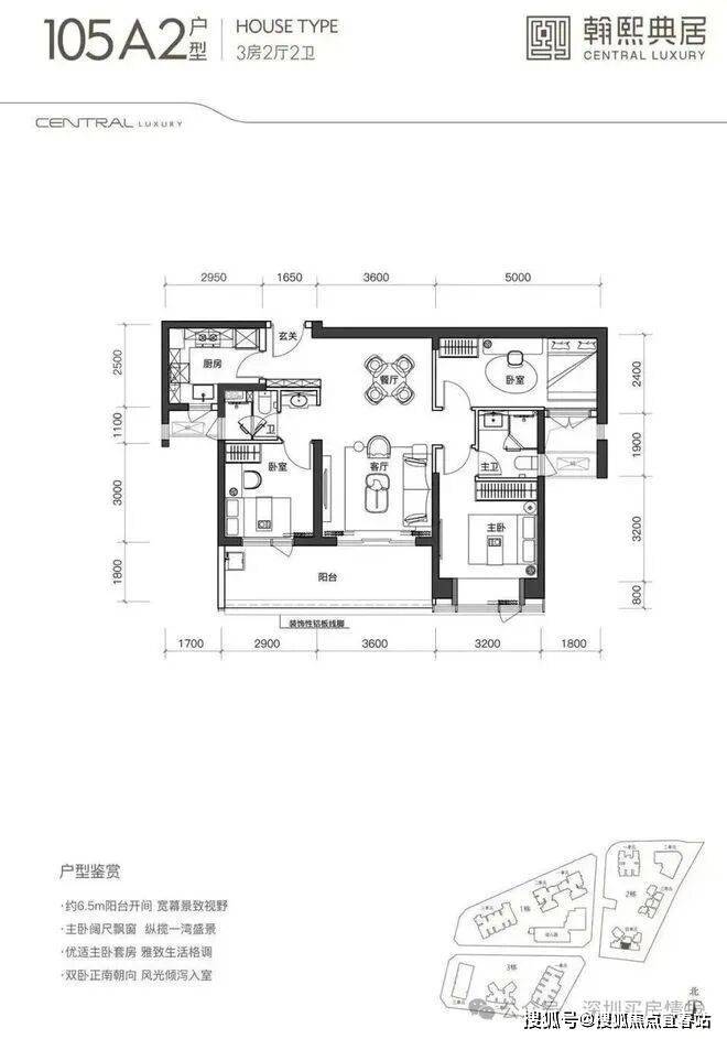 建面约105㎡的3房2厅2卫