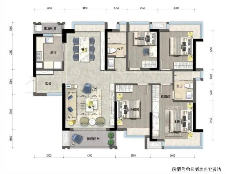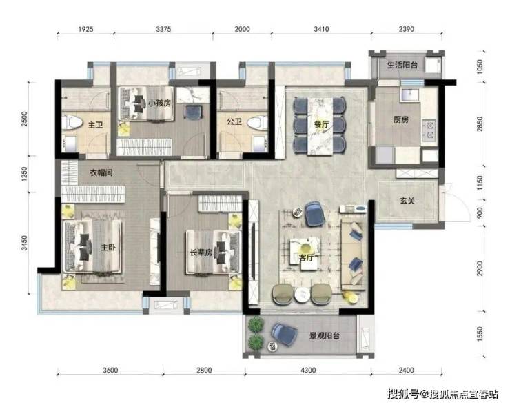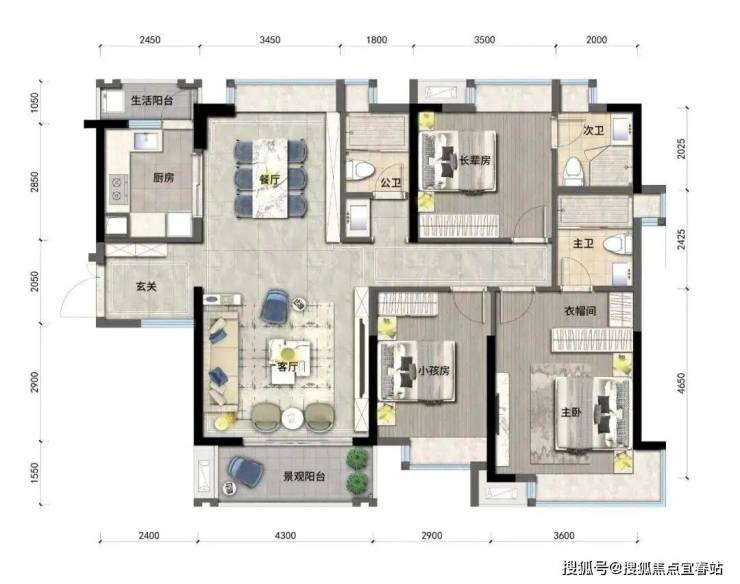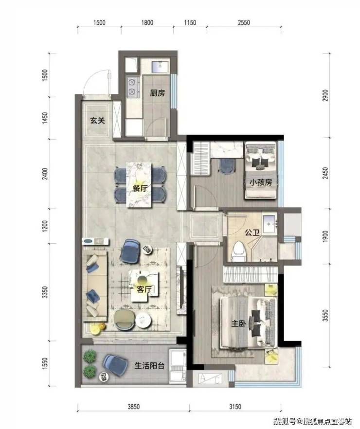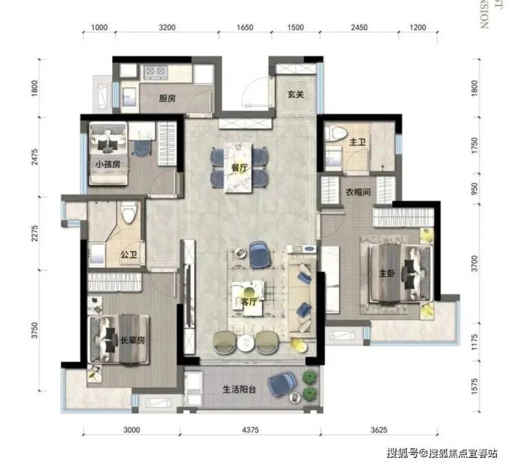 ◎户型方正,动静分区,干湿分离