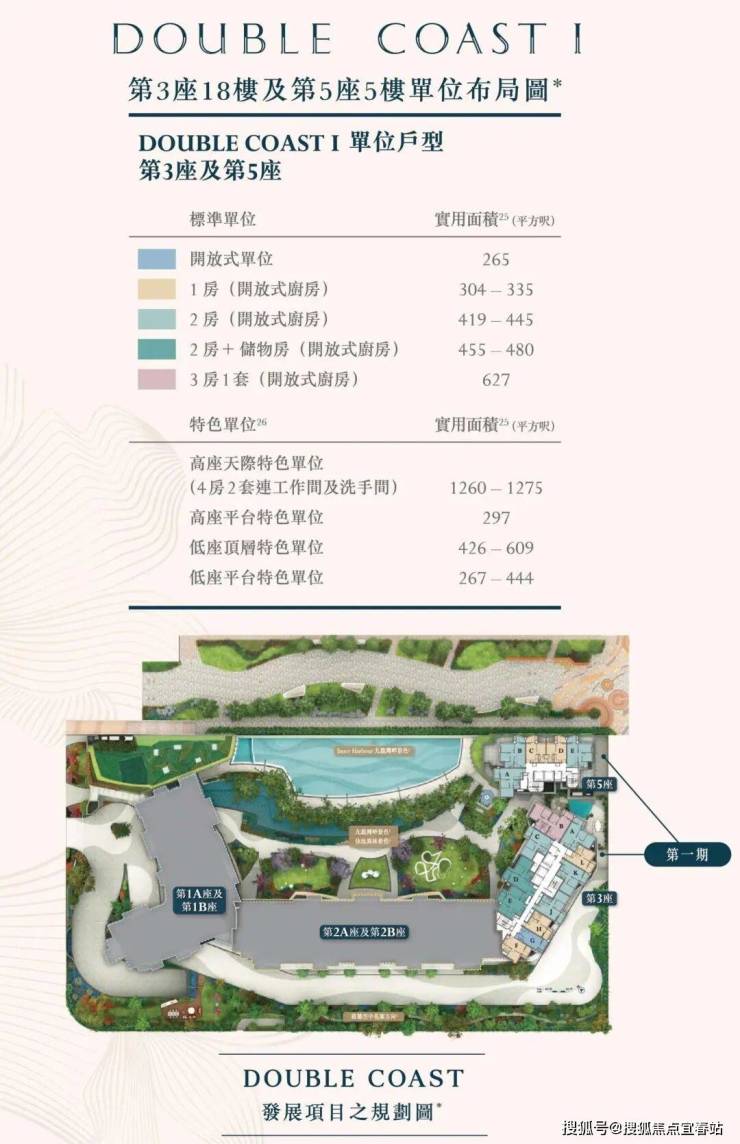 Double Coast 双海湾由会德丰地产、恒基兆业、中国海外及新世界四大开发商联合打造,位于九龙启德跑道区承丰道 19 号,直面维多利亚港内海,低座住宅户户向海,高座单位可远眺维港全景及东九龙天际线。
