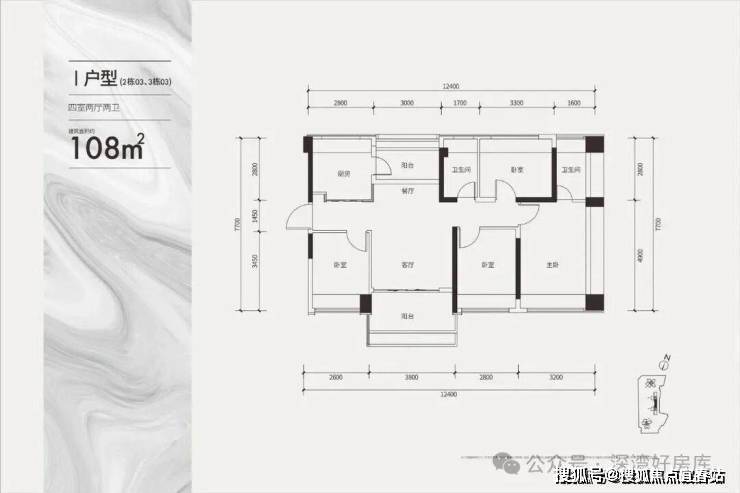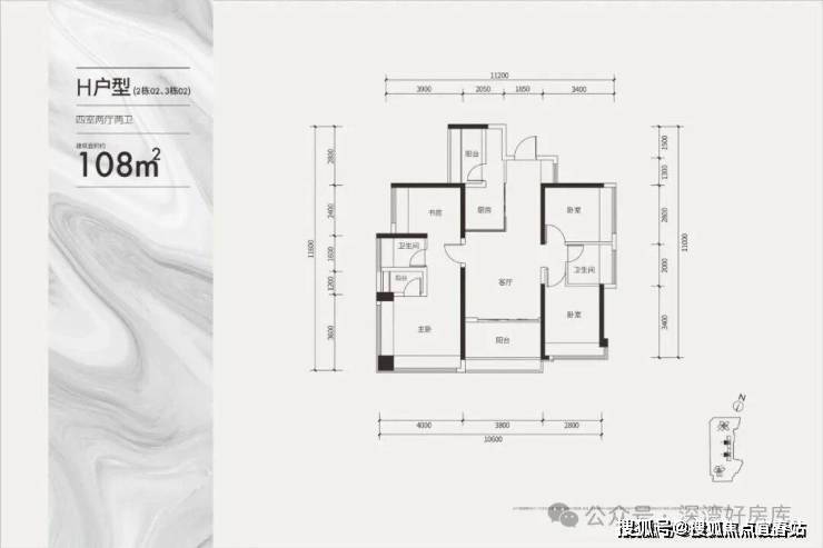 建面约108㎡通透四房户型
