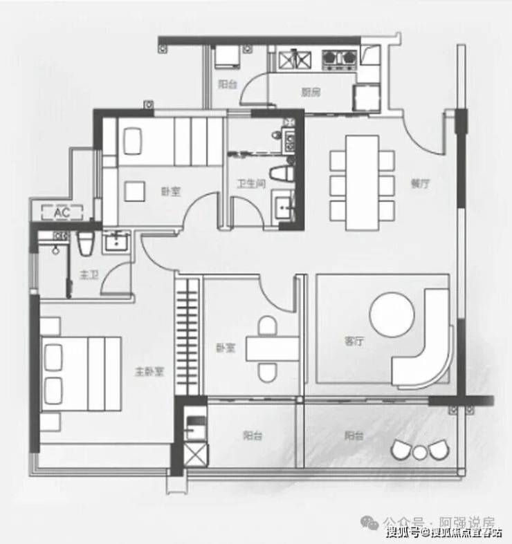 117㎡3房2卫(A户型):竖厅南北通透,前后双阳台,独门独户。开间约3.75m,LDK-B餐客一体化设计。客厅连接次卧出7m长的大阳台,主、次卧,阳台朝南向,可直面海景。动静分离设计,客厅、餐厅等公共区域与卧室区域独立,减少相互干扰。
