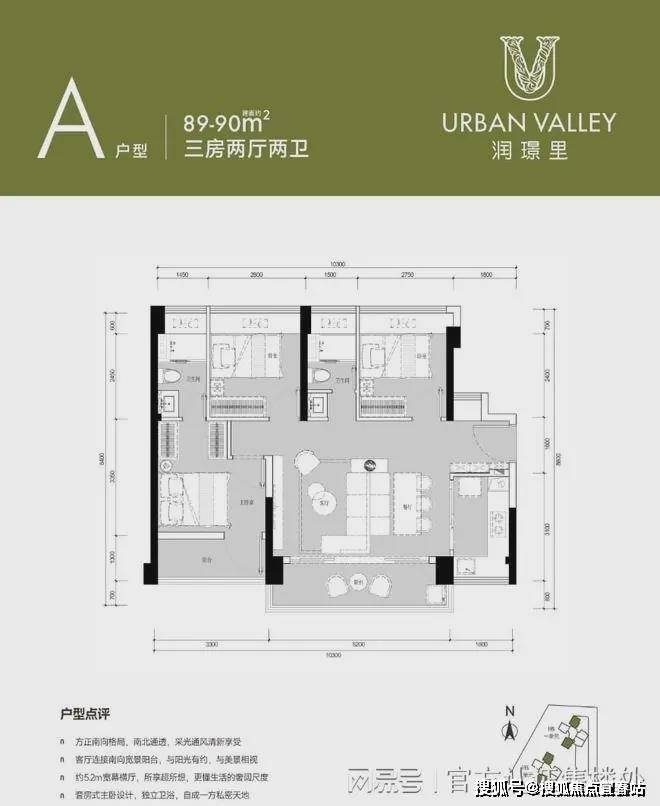 主力户型:79-90m²三房,