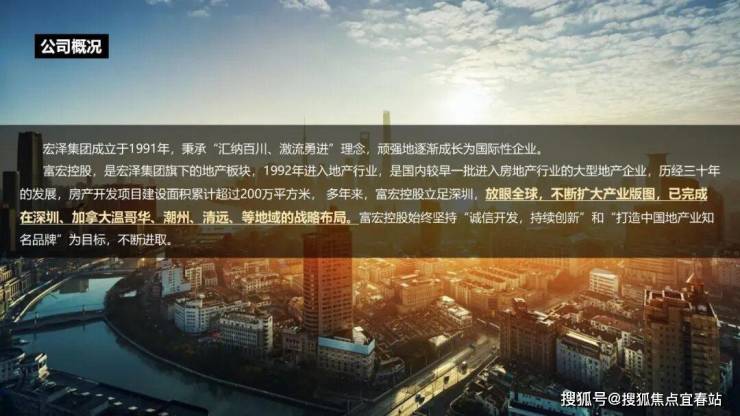 宏泽集团成立于1991年,秉承"汇纳百川、激流勇进"理念,已成长为国际化企业集团。旗下富宏控股自1992年进入地产行业,是国内较早一批房地产企业,累计开发面积超200万㎡,已完成在深圳、加拿大温哥华等地的战略布局。