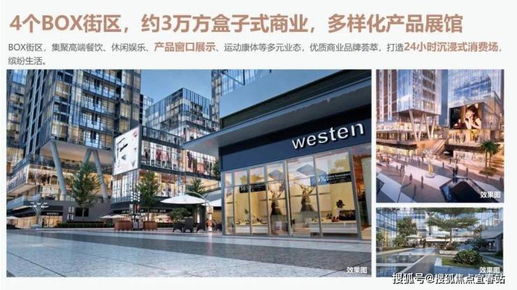 约3万方盒子式商业,集聚高端餐饮、休闲娱乐、产品展示等多元业态,打造24小时沉浸式消费场。