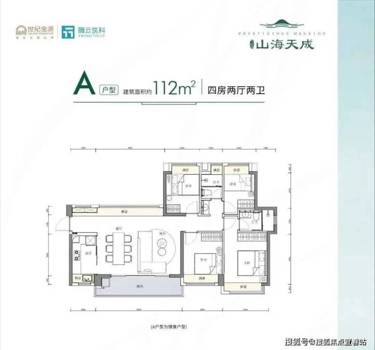 112㎡的4房2厅2卫,设计的是横厅南北通透格局,客餐厅6.2米开间,三开间朝南,4个卧室分别是3.3米/2.9米/2.5/2.4米的宽度,全屋飘窗,U型厨房,公卫三段式分离设计, 得房率:80.14%(不含赠送),6.2米长的超大阳台,朝正南或西南朝向,看花园景观。