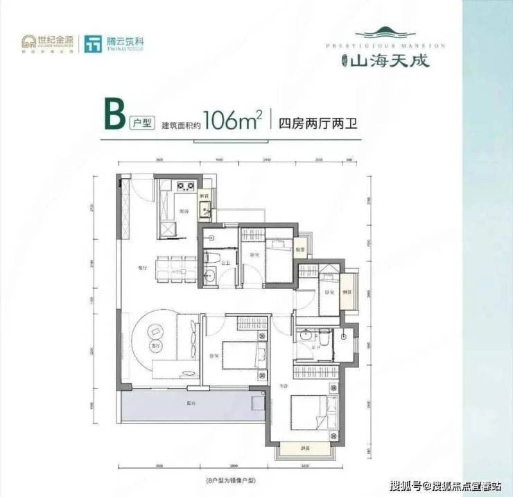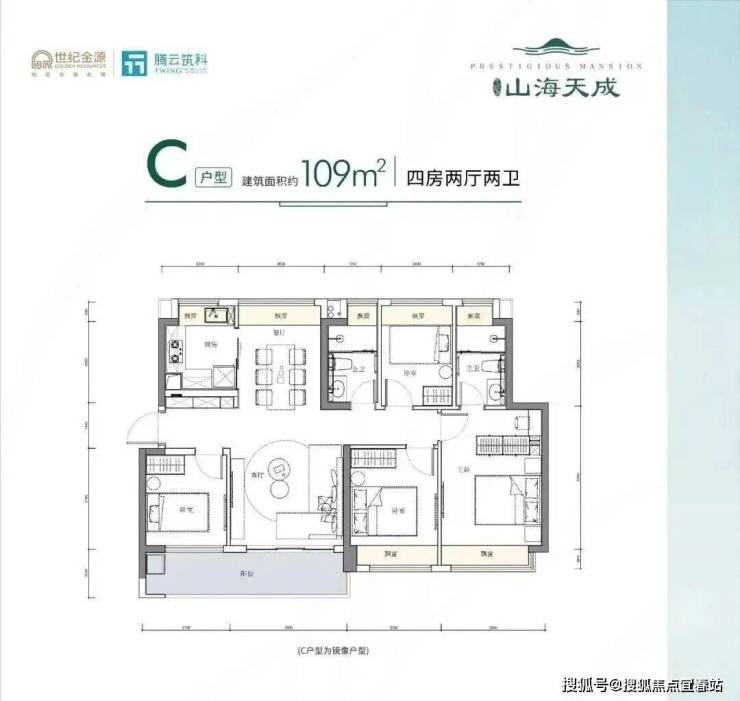 109㎡的4房2厅2卫,设计的是竖厅南北通透格局,客厅3.6米开间,四开间朝南,4个卧室分别是3.2米/2.9米/2.7/2.2米的宽度,全屋飘设计,U型厨房, 得房率:78.39%(不含赠送),客厅连接卧室有1个6.3米长的超大阳台,主朝东南或西南向,看花园景观。