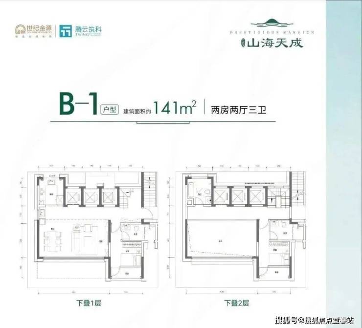141-151㎡的复式洋房,上下2层,一层2户设计,客餐厅6.95米开间,中空客厅6米挑高,U型厨房,得房率86.17%(不含赠送),空间可塑性比较强。