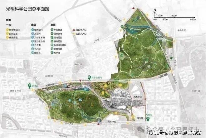 科学公园:占地约208万㎡,相当于两个深圳湾公园,北翼已开放,预计2025年11月南翼开放,整体将于2025年全面开通。
