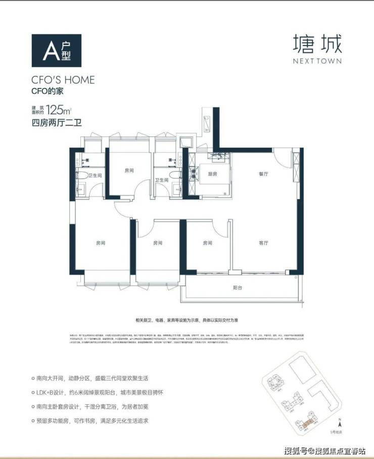 125㎡四房:经典竖厅格局,四开间朝南,LDKB一体化设计,6米长大阳台,U型厨房,主卧套房设计,舒适度最高。折后总价750万起;