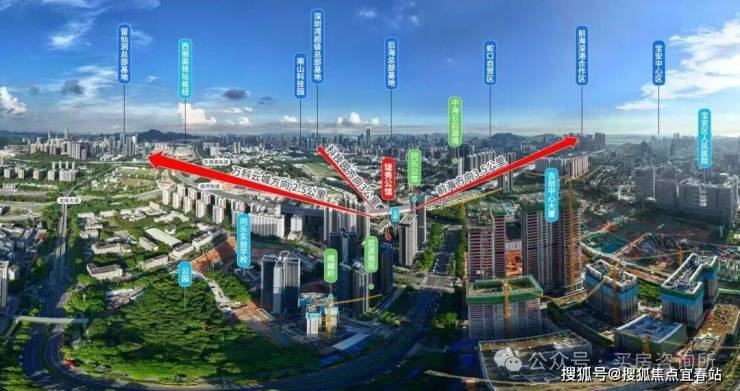项目北向约2.5km是留仙洞总部基地,是集战略性新兴产业特征和企业总部特征为一体的科技产业CBD,已吸引了大疆、光峰光电、天珑移动、乐普医疗等头部企业总部入驻,未来将形成超3000亿元的产业集群,成为深圳引领高端发展的创新高地。