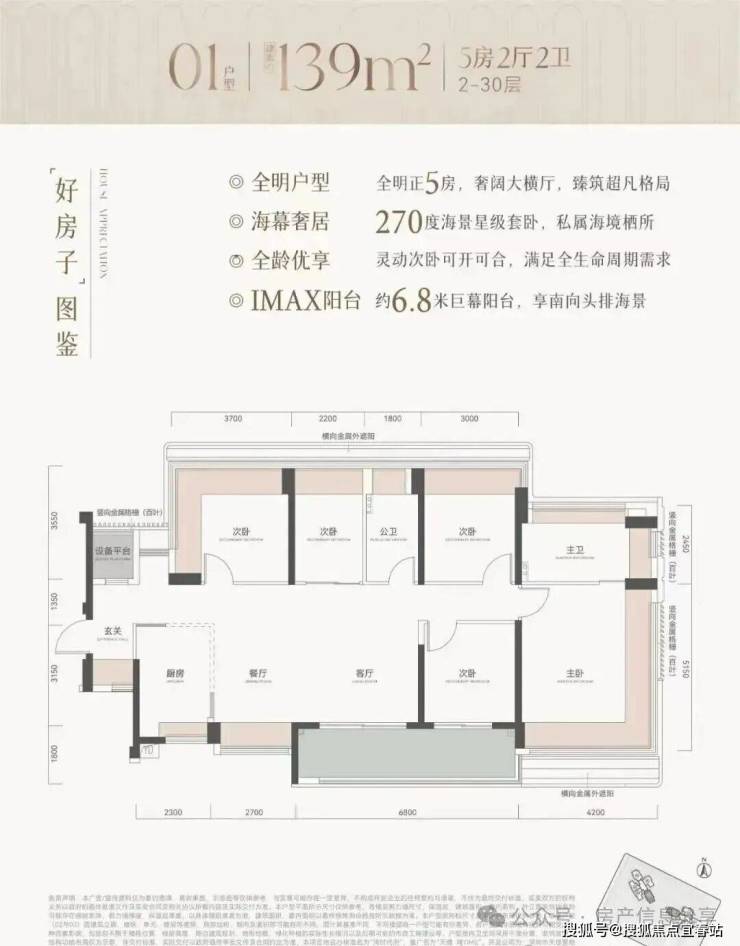 约80%南向全明大面宽户型,全屋环绕式采光面,盛满一室阳光;约6.3-6.8m阔景大阳台,晨间瑜伽、午茶瞰海、暮色小酌,海幕星空自成生活背景;海景星级套卧,270°环幕自在观景,享受头排海景盛宴。
