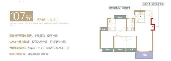 绿城桂语旗峰作为绿城在东莞的首作,项目推售建面约89-116m²三至四房产品,产品打造上面亮点满满,例如270度L型无柱飘窗、LDKB朝南大开间等等。