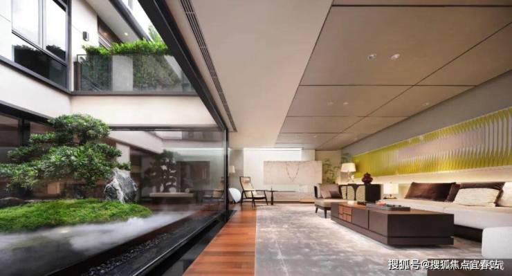 项目地下两层打造下沉式琉璃花镜院落,使阳光入室,把地下空间变成 360°天然采光,全明空间,站在期间,仿佛置身于一楼,完全不觉得在负二层。