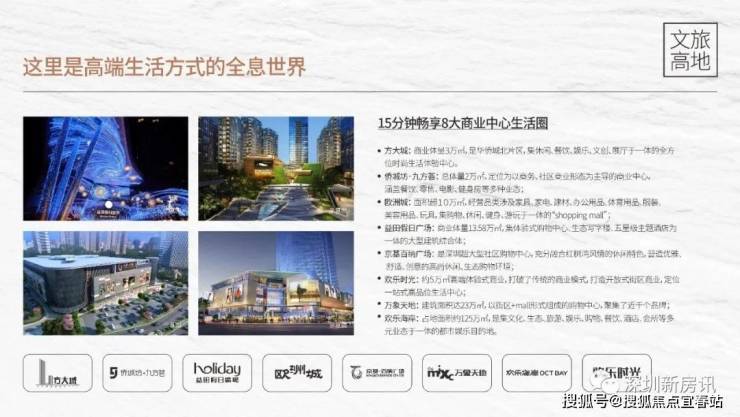 15分钟畅享8大国际商业中心生活圈,方大城、九方荟、欧洲城、益田假日广场、京基百纳广场、欢乐时光、万象天地、欢乐海岸等。 距万象天地、益田假日广场约2.6公里,以项目为圆心,半径1.2公里范围内有万象天地、益田假日广场,实际步行距离约2.6公里,开车需10分钟左右。项目自带1.69万㎡商业。