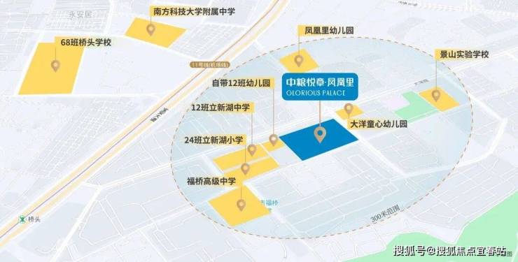 悦章凤凰里(中粮凤凰里二期)位于宝安大洋路与塘新路交汇处西侧,总用地面积54094㎡,住宅用地32655㎡,容积率4.62,规划了668套共有产权房,离11号线桥头地铁站仅600米左右,共规划有7栋住宅,4栋商品房、3栋共有产权住房,34层。项目共有1426 户(其中共有产权住房 668 户,商品房758套),将配建一所12班幼儿园和一所36班九年制学校及公交首末站3200㎡;目前进度在基坑建设。