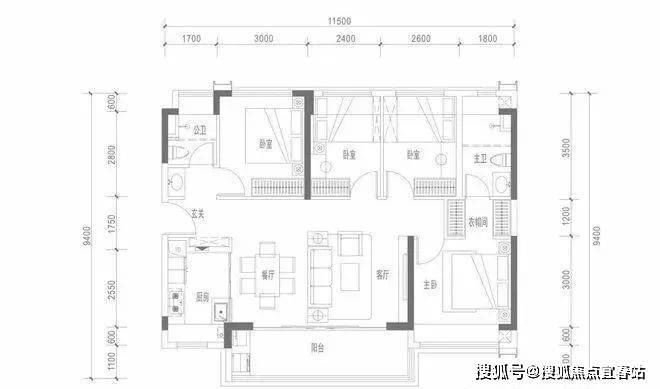 约114㎡四房两厅两卫