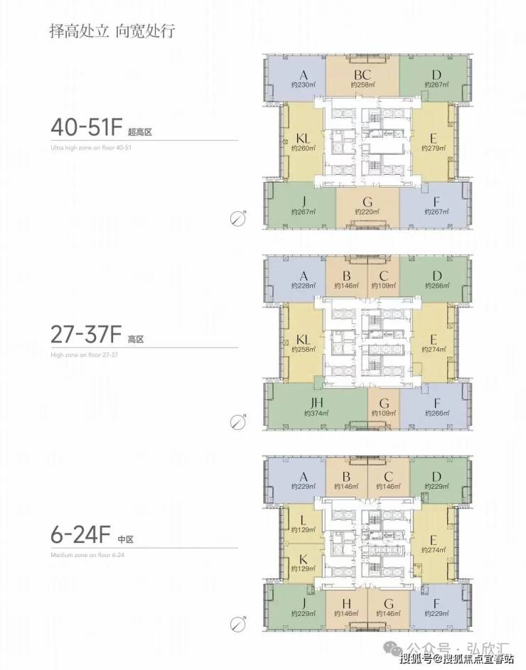 天幕藏品,总建面约8.6万㎡,主打建面约125-280㎡天幕藏品,分布在楼层的中区、高区、超高区,分别命名为风邸(6-24F)、兴邸(27-37F)和颂邸(40-52F)。