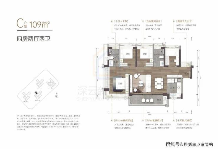 109㎡四房两卫横厅,29套,总价985-1039万;