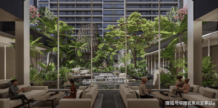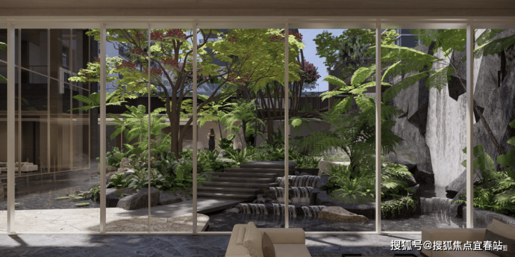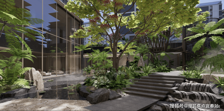 三重下沉水院,通透玻璃幕墙围合精琢庭院;四重中央园林,四季有景,空间流畅。