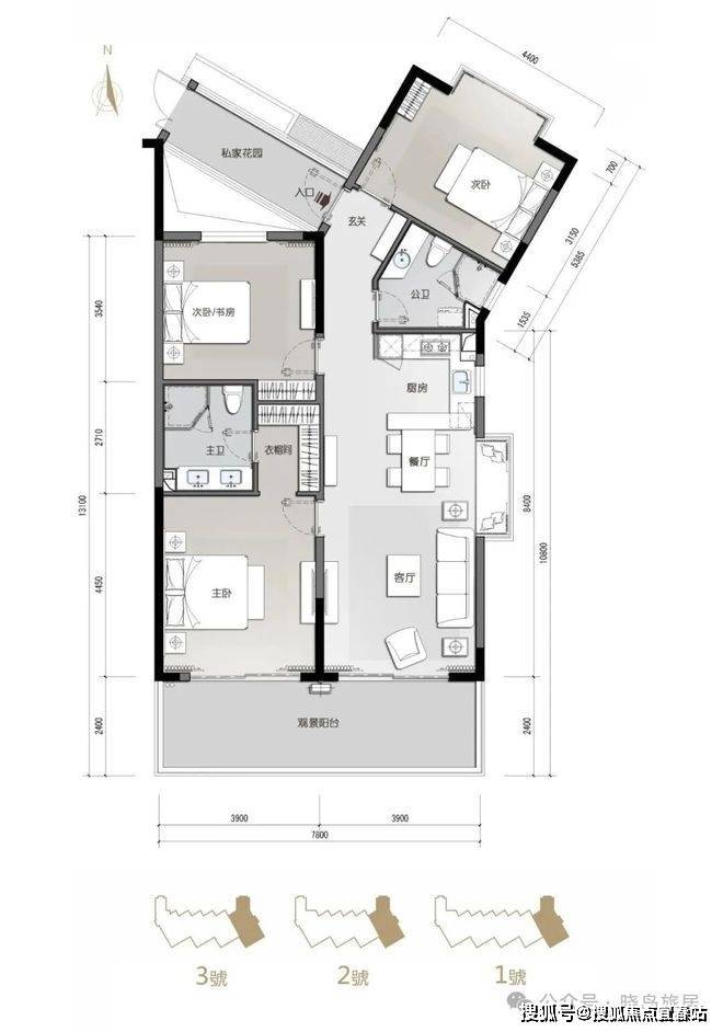 梯户比:1#楼2梯5户,2#-3#楼2梯4户