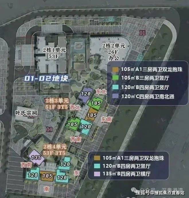 105㎡有两个户型,分别为A1双龙抱珠以及B户型传统竖厅