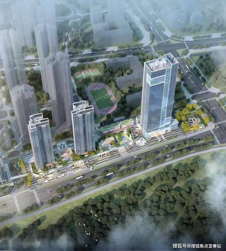 项目是一个小综合体,有两栋住宅+1栋写字楼+商业组成。