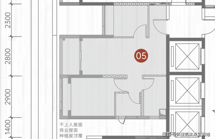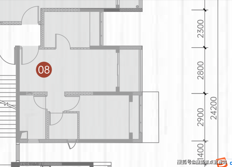 3梯7户布局,其中公租房4户,02/05/08户型为两房各30套,07户型为三房30套,其余房号为可售人才房。