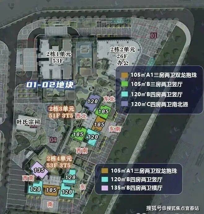 105㎡有两个户型,分别为A1双龙抱珠以及B户型传统竖厅